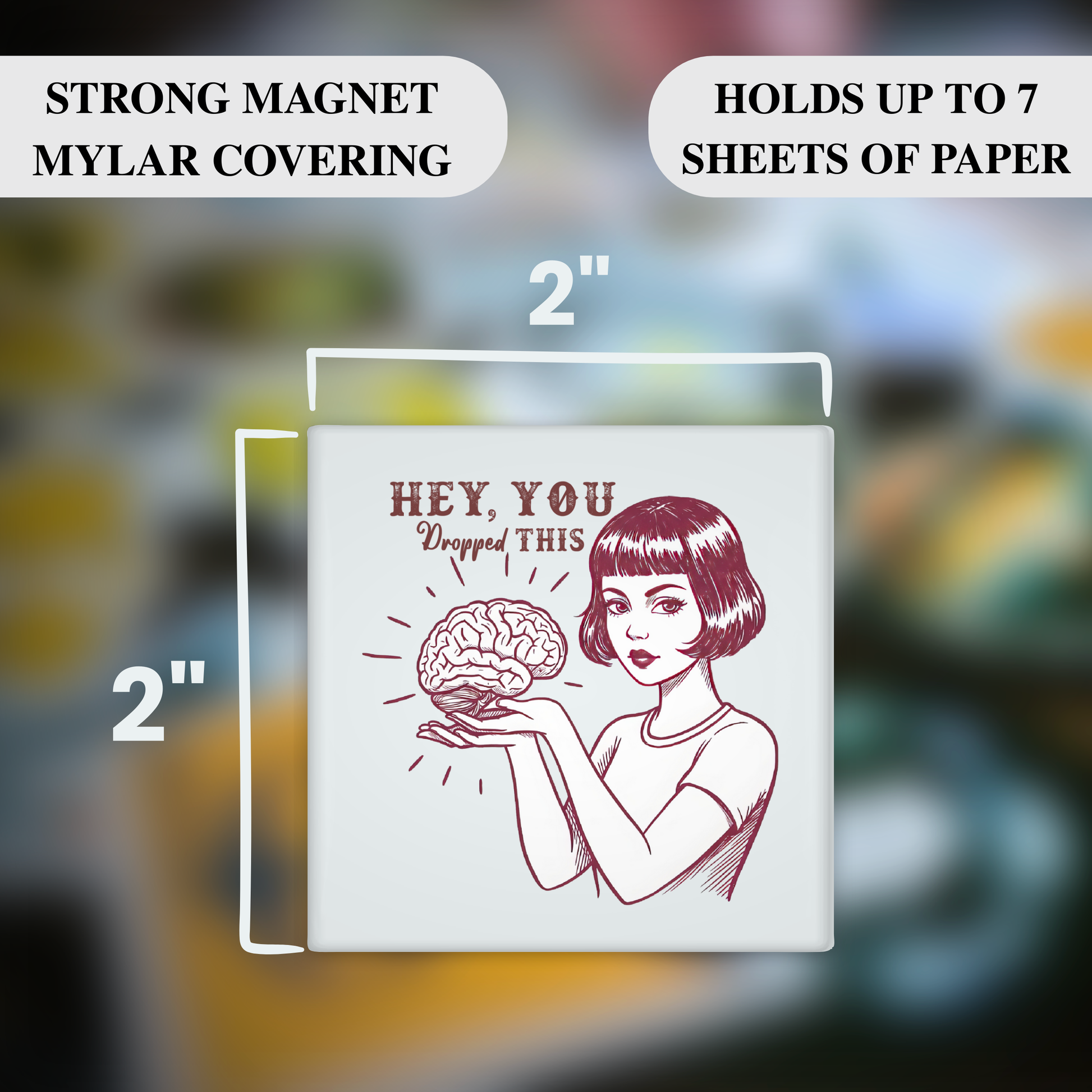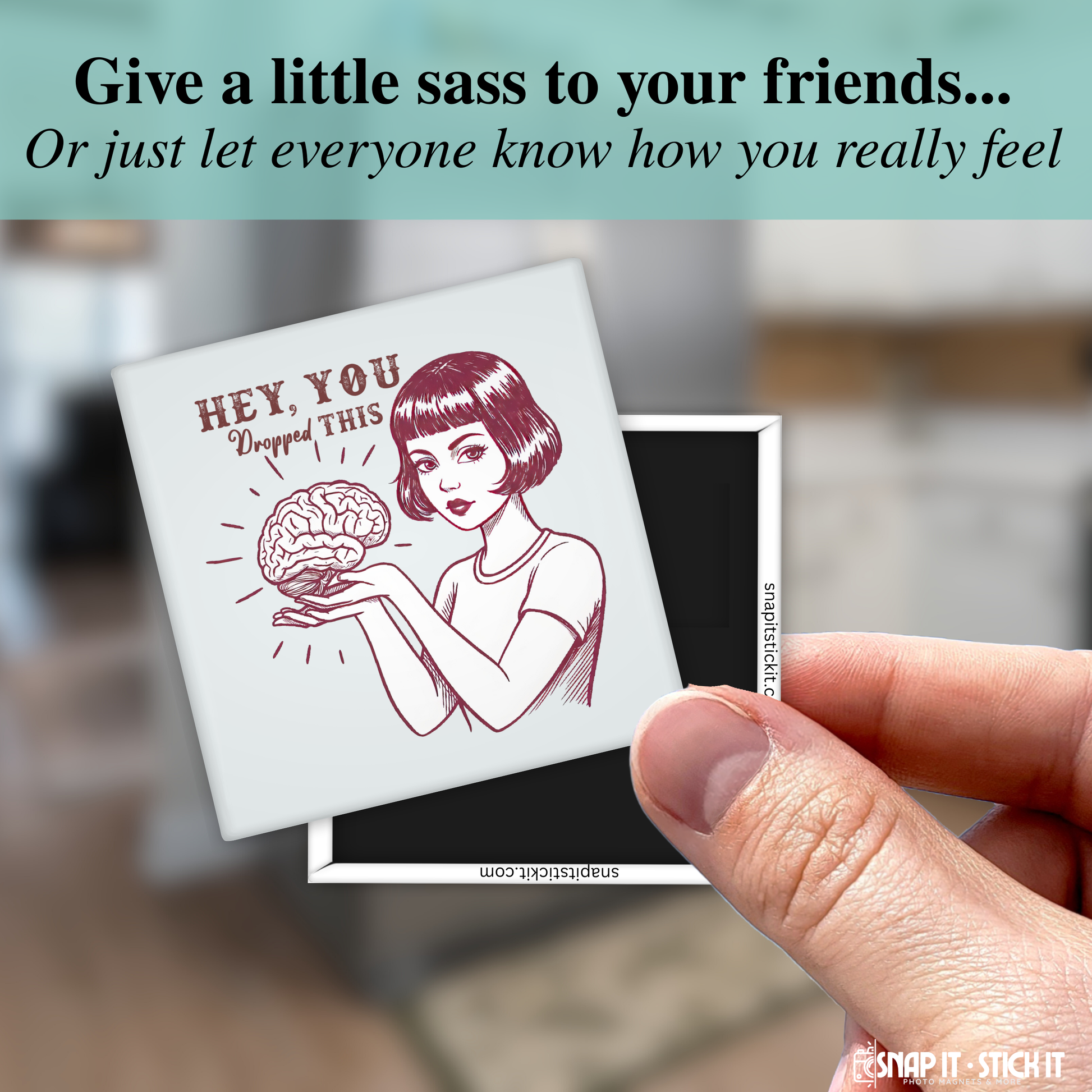 Hey You Dropped This Funny Magnet – Retro Girl Holding Brain for Smartass Gift